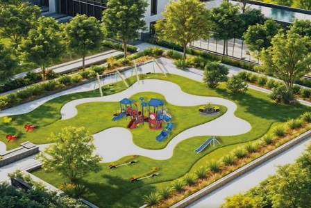 Ans. Amenities include a clubhouse, swimming pool, gym, jogging track, landscaped gardens, children’s play area, and 24/7 security.